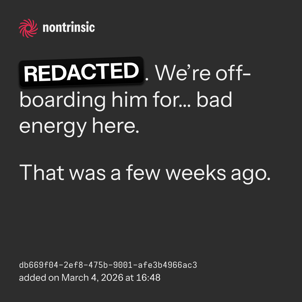 bagikanREDACTED. We’re off-boarding him for… bad energy here.