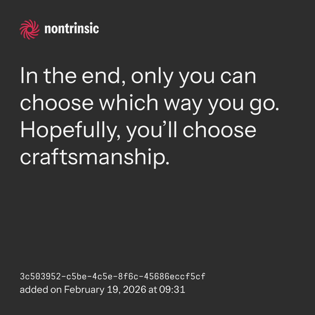 bagikanIn the end, only you can choose which way you go. Hopefully, you’ll choose craftsmanship.