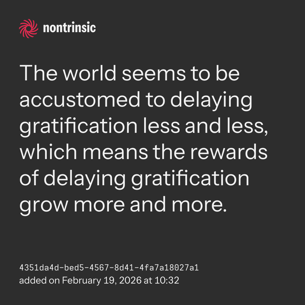 bagikanThe world seems to be accustomed to delaying gratification less and less, which means the rewards of delaying gratification grow more and more.