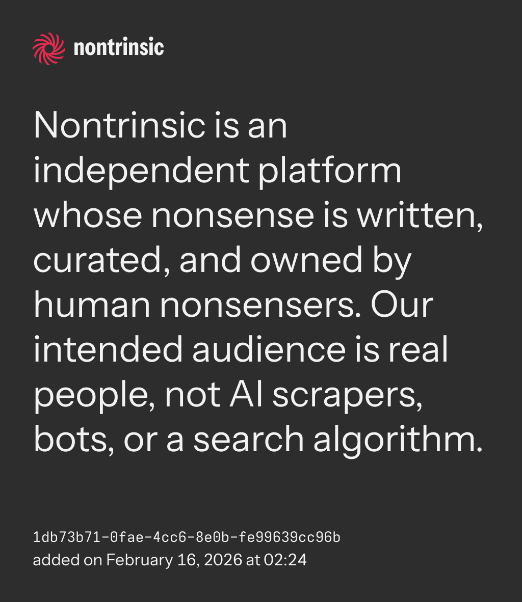bagikanNontrinsic is an independent platform whose nonsense is written, curated, and owned by human nonsensers. Our intended audience is real people, not AI scrapers, bots, or a search algorithm.