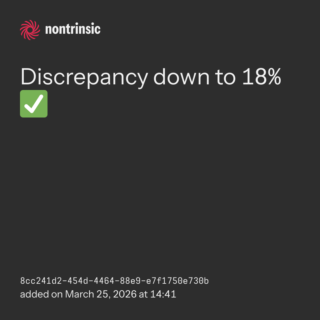 bagikanDiscrepancy down to 18% ✅