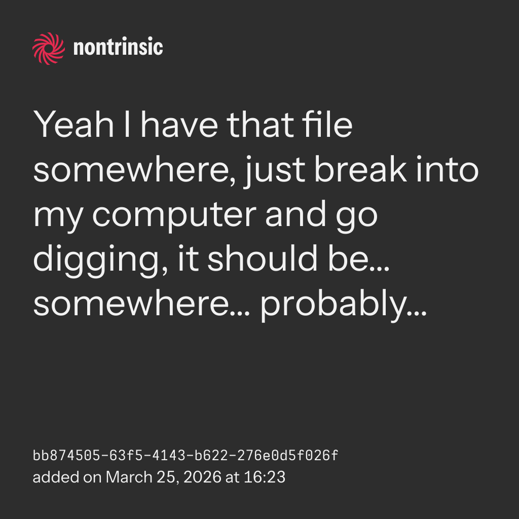 bagikanYeah I have that file somewhere, just break into my computer and go digging, it should be… somewhere… probably…