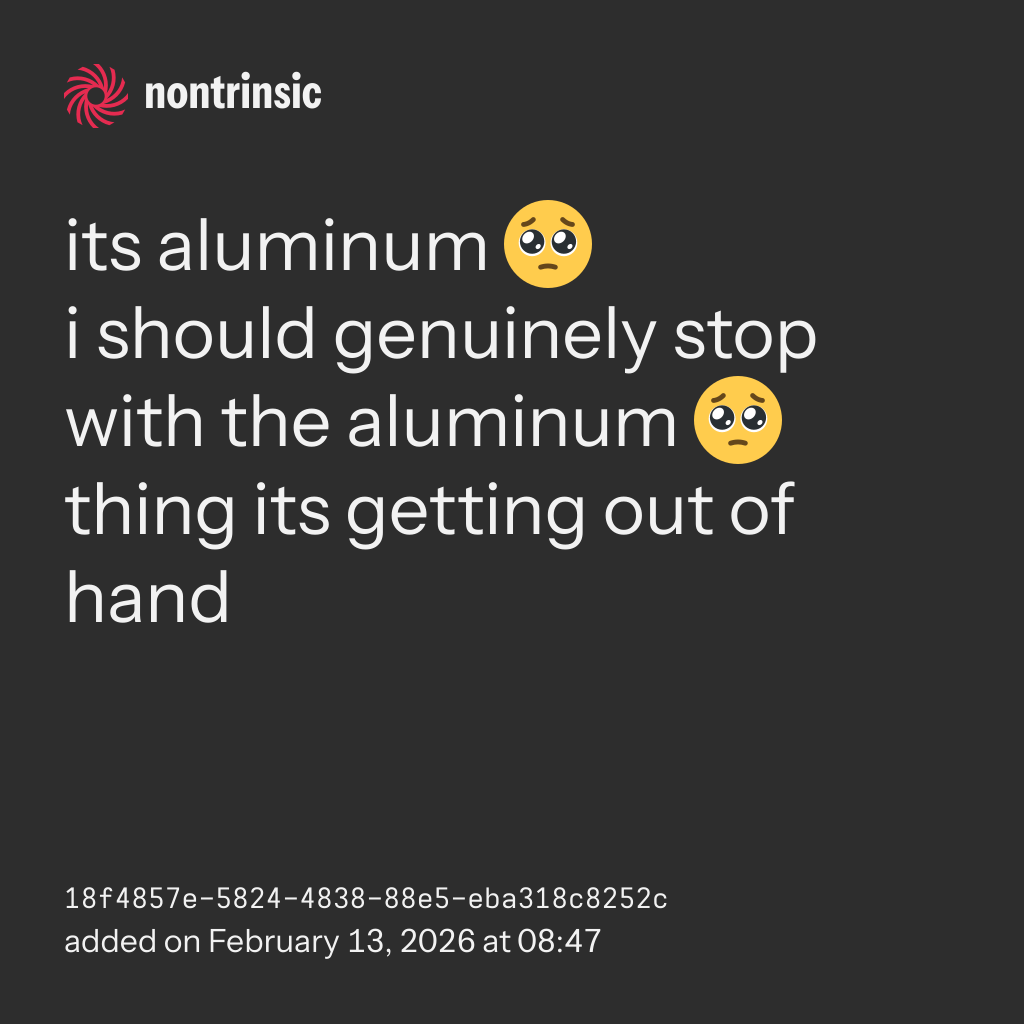 i should genuinely stop with the aluminum 🥺 thing its getting out of hand