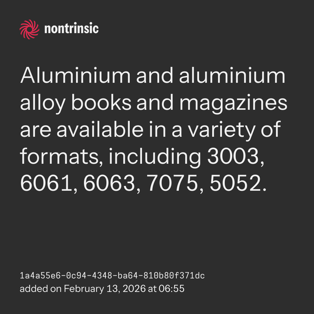 bagikanAluminium and aluminium alloy books and magazines are available in a variety of formats, including 3003, 6061, 6063, 7075, 5052.