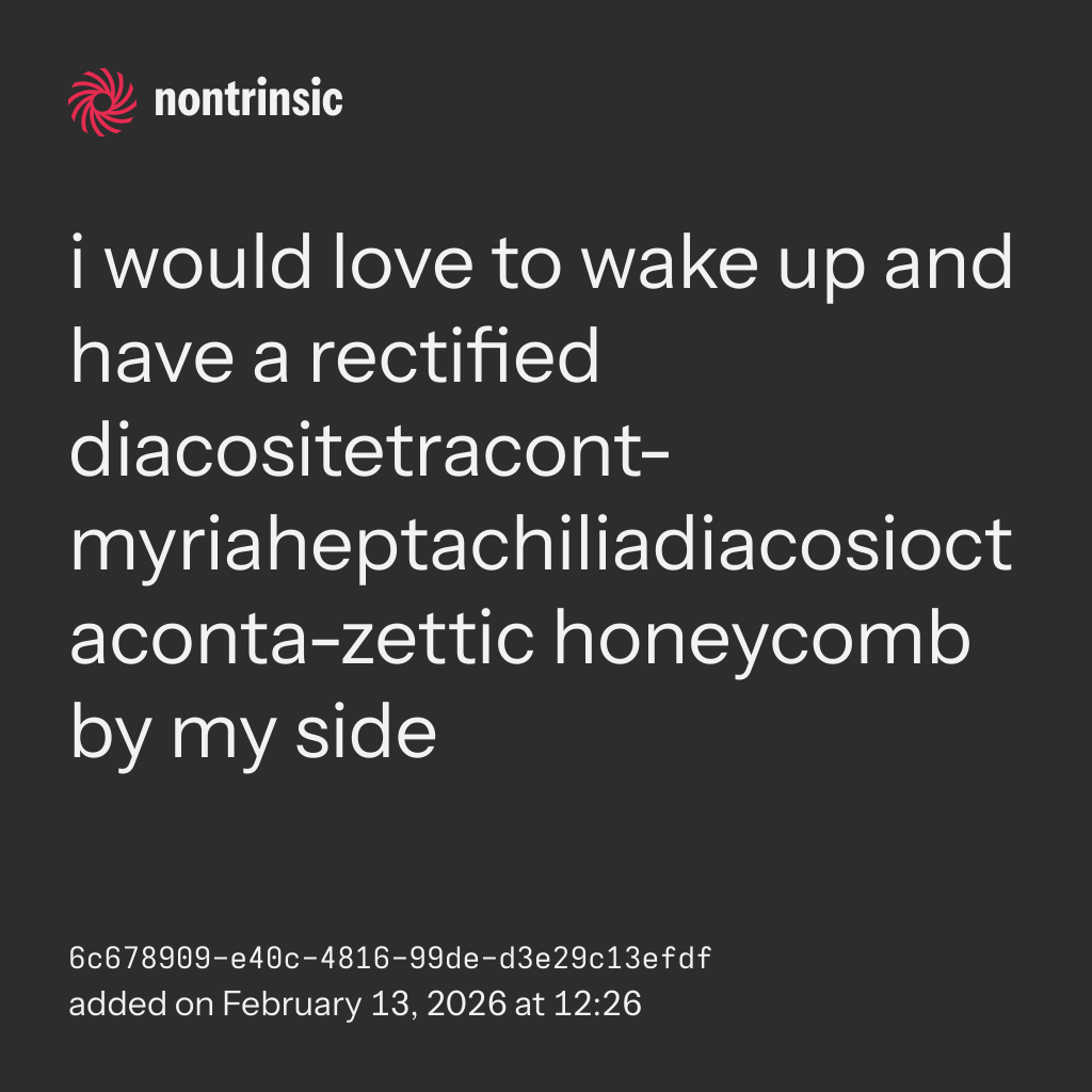 bagikani would love to wake up and have a rectified diacositetracont-myriaheptachiliadiacosioctaconta-zettic honeycomb by my side