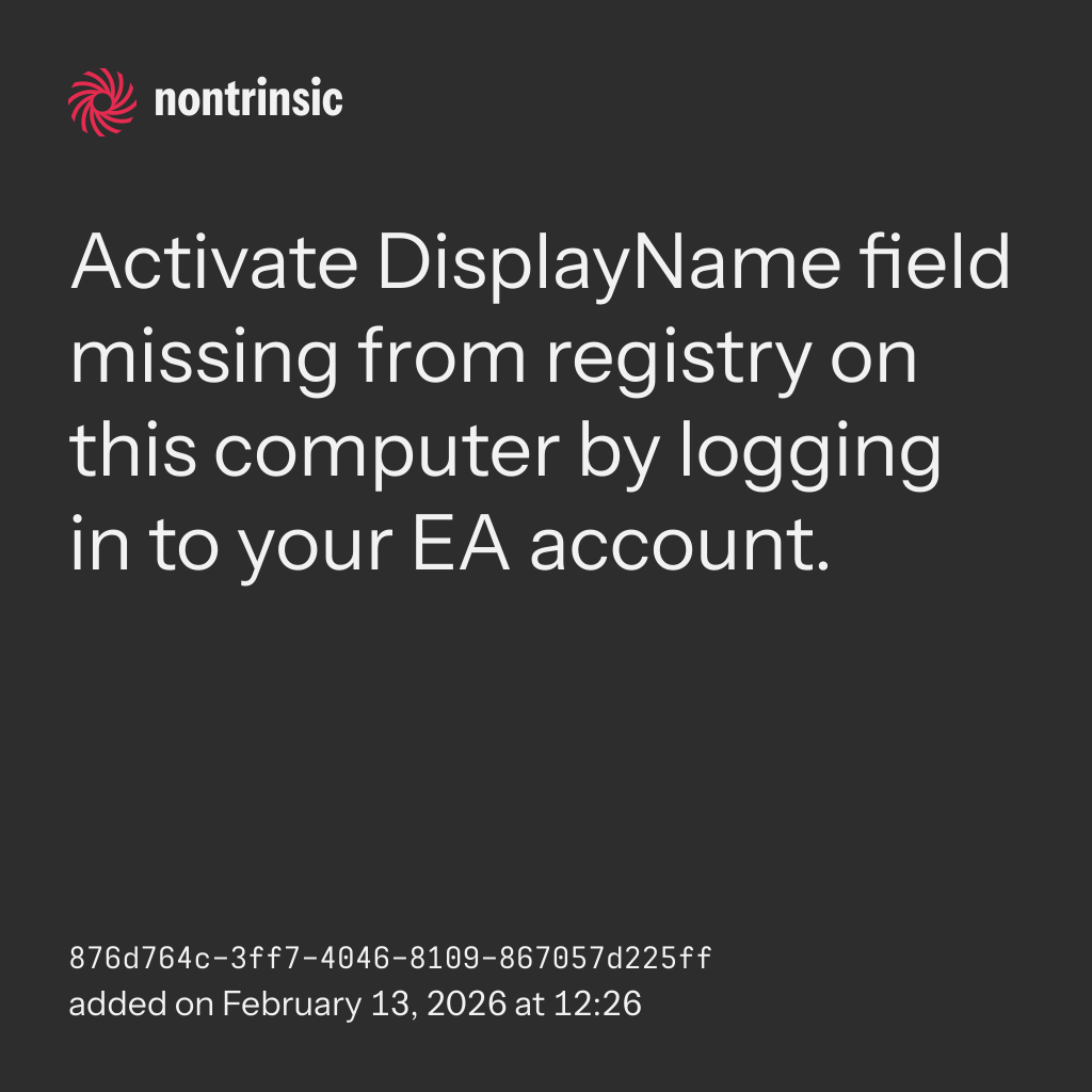 bagikanActivate DisplayName field missing from registry on this computer by logging in to your EA account.