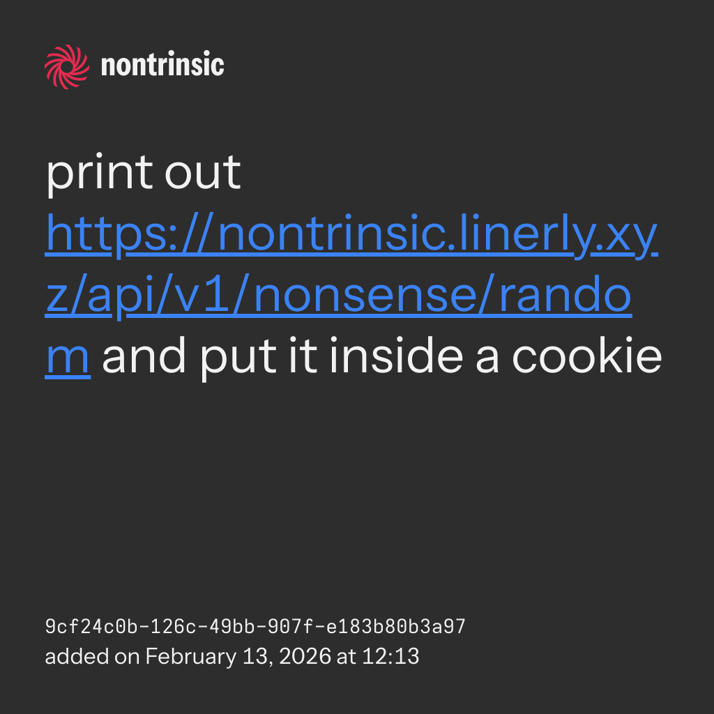 bagikanprint out https://nontrinsic.linerly.xyz/api/v1/nonsense/random and put it inside a cookie