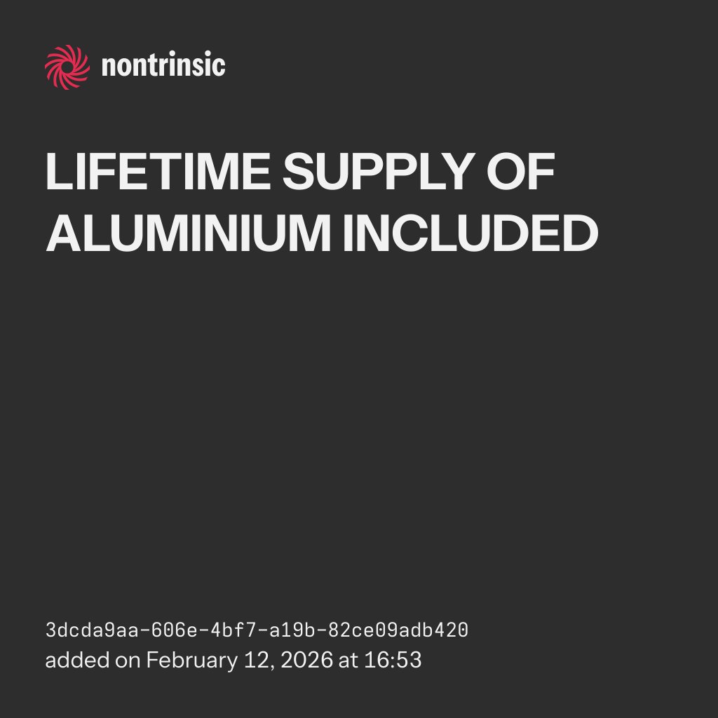 bagikanLIFETIME SUPPLY OF ALUMINIUM INCLUDED