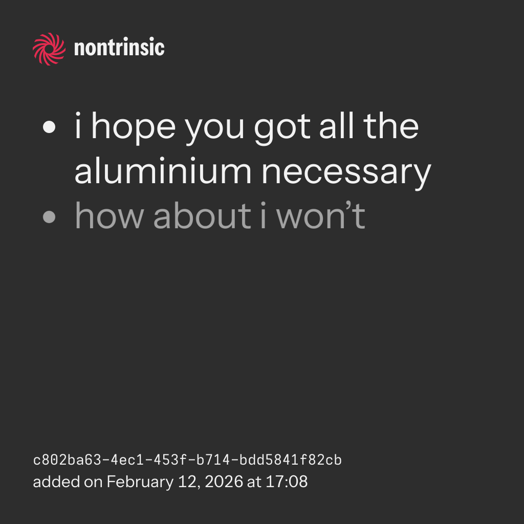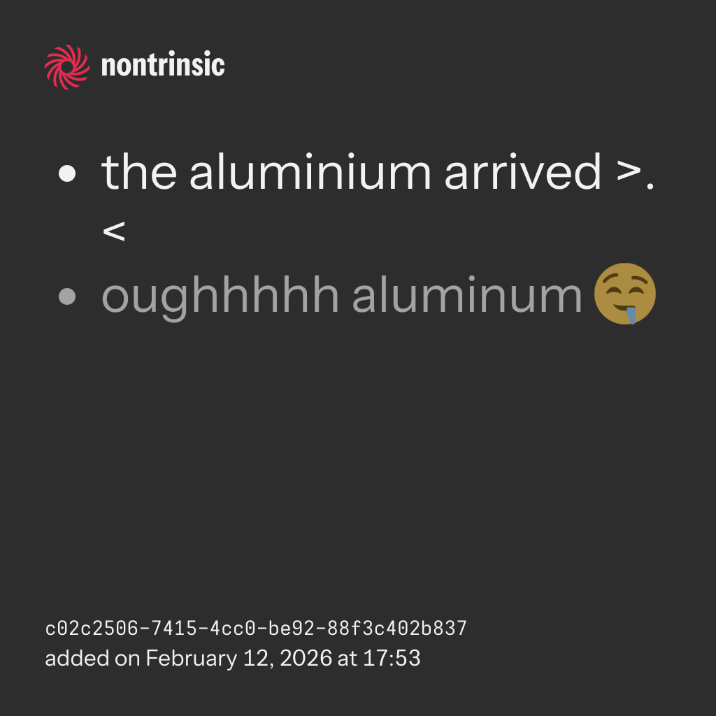 bagikanmaybe the real aluminium was the nonsense we contributed along the way