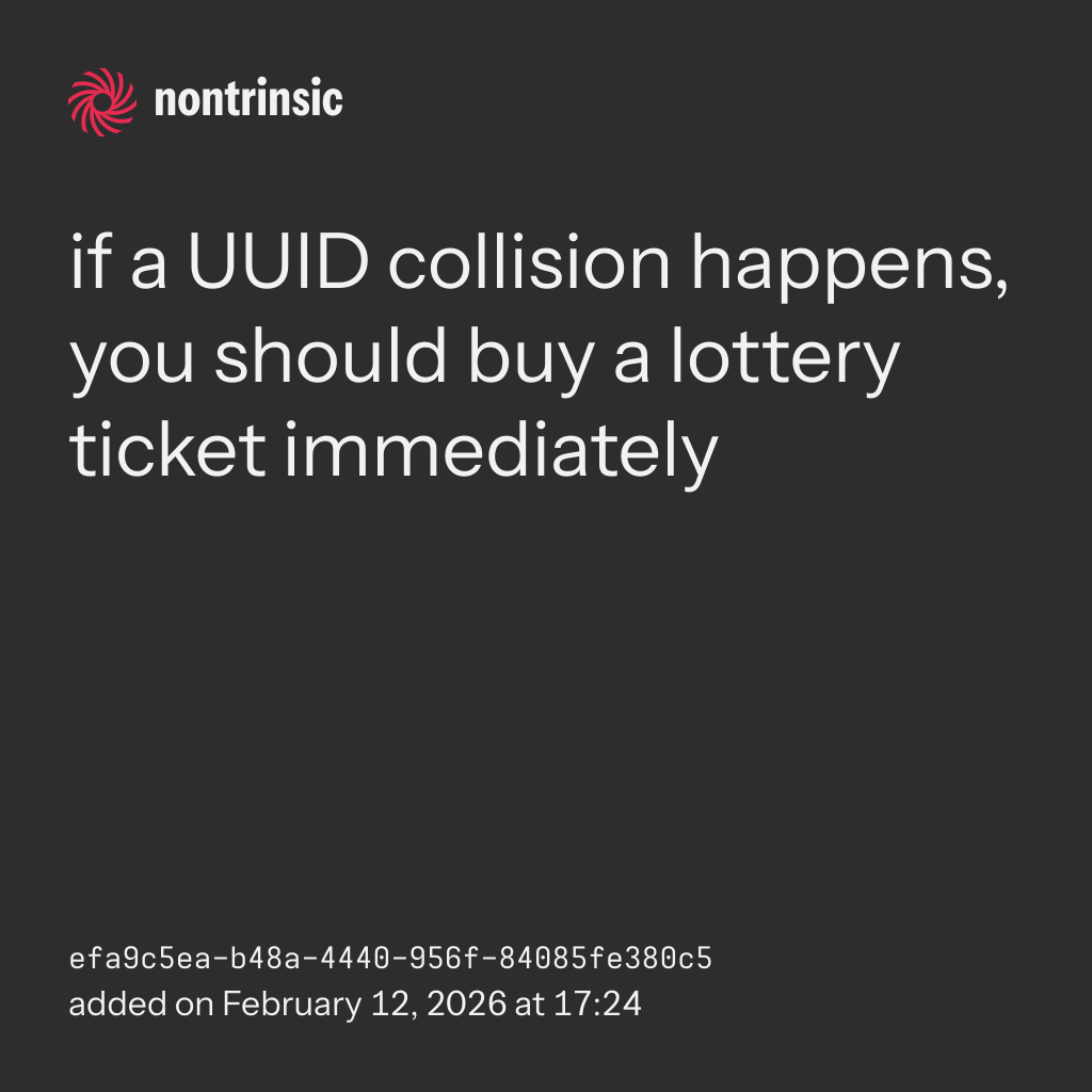 bagikanif a UUID collision happens, you should buy a lottery ticket immediately