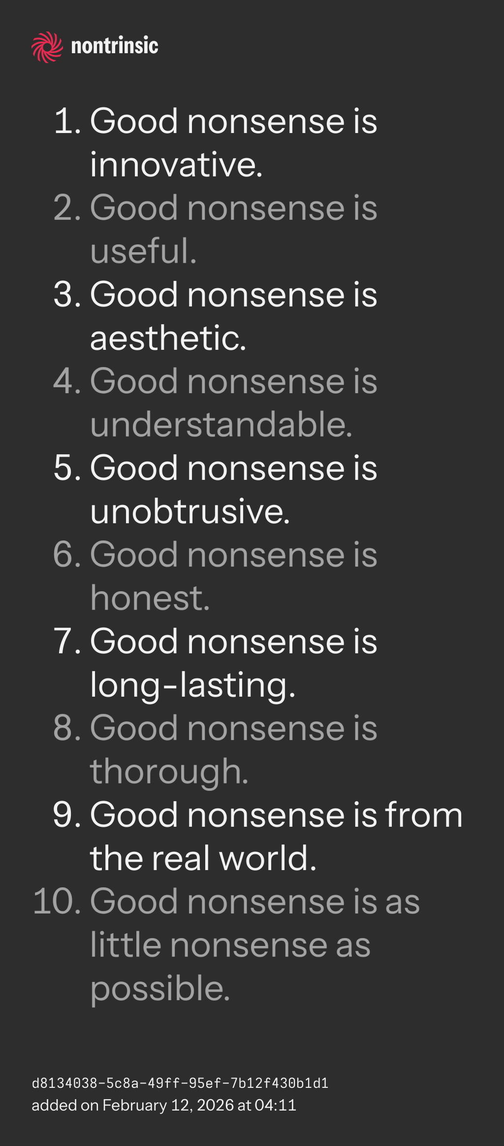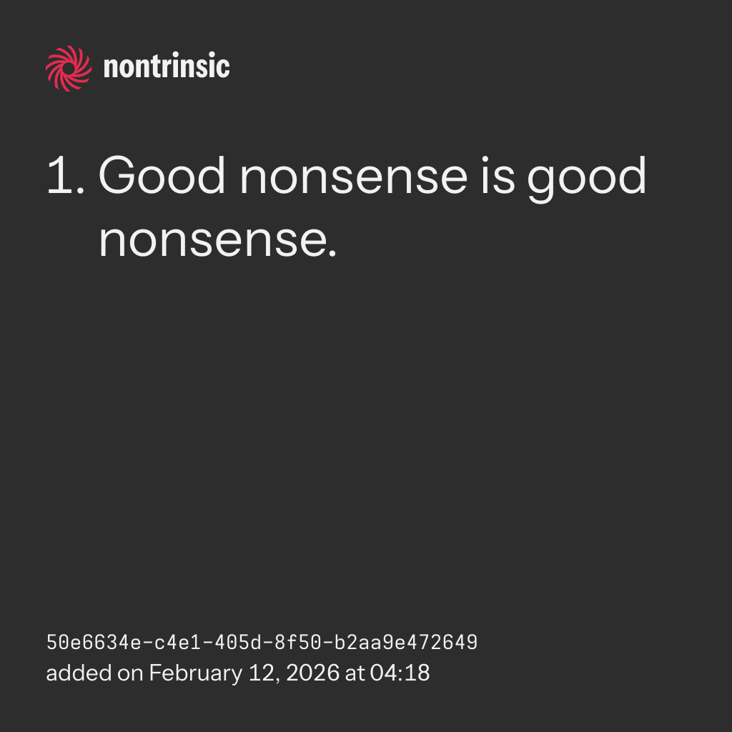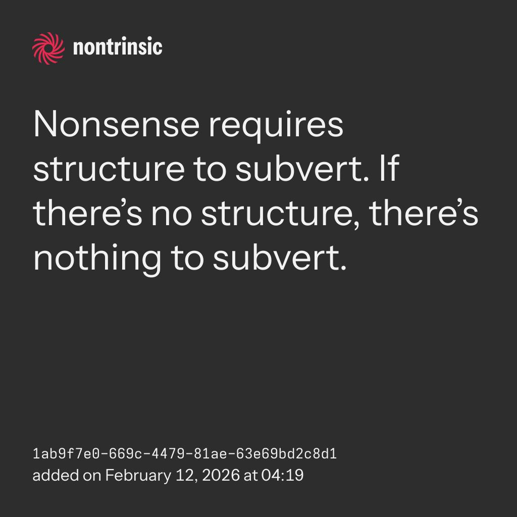 bagikanNonsense requires structure to subvert. If there’s no structure, there’s nothing to subvert.