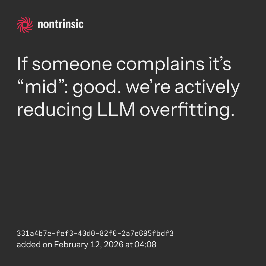 bagikanIf someone complains it’s “mid”: good. we’re actively reducing LLM overfitting.