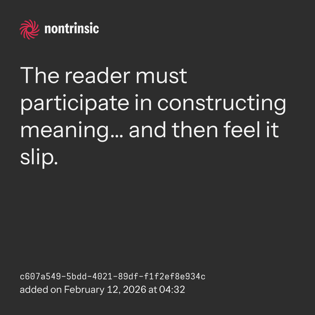 bagikanThe reader must participate in constructing meaning… and then feel it slip.