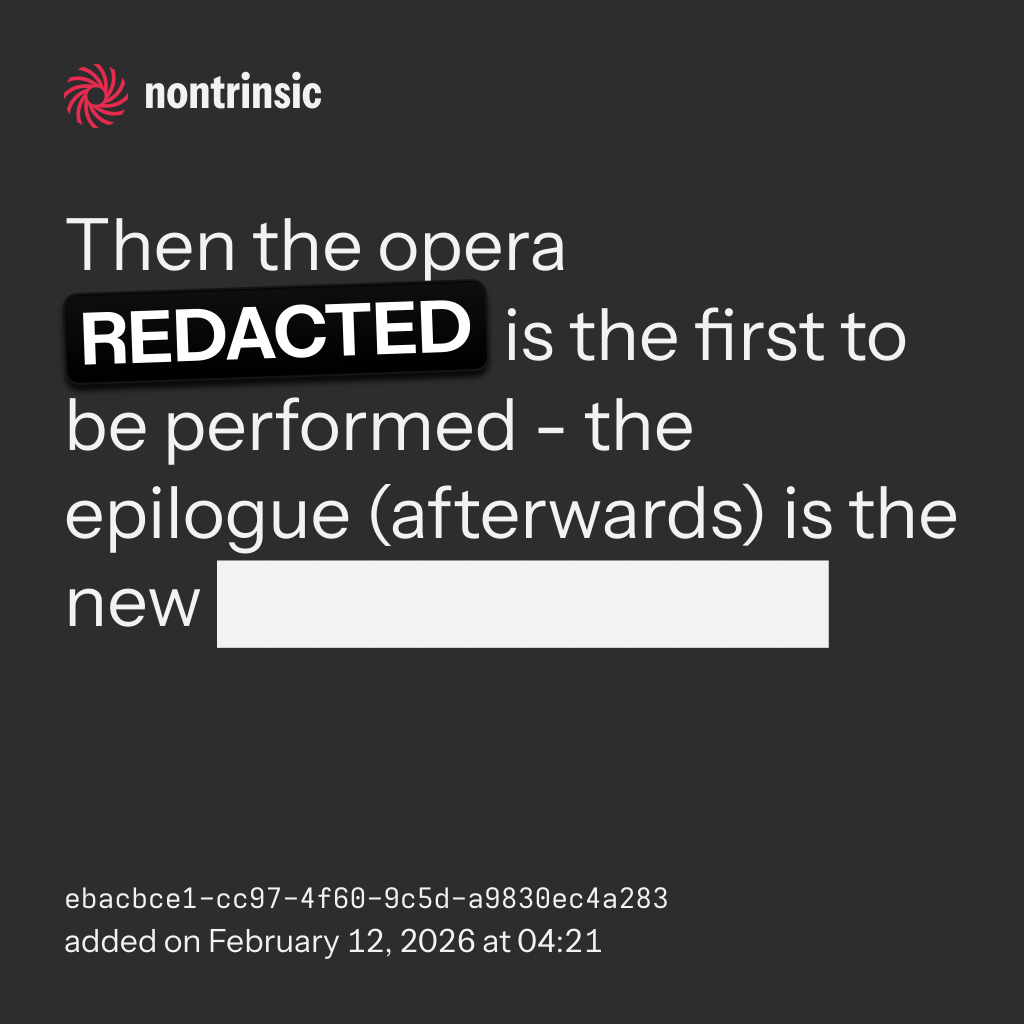 bagikanThen the opera REDACTED is the first to be performed - the epilogue (afterwards) is the new