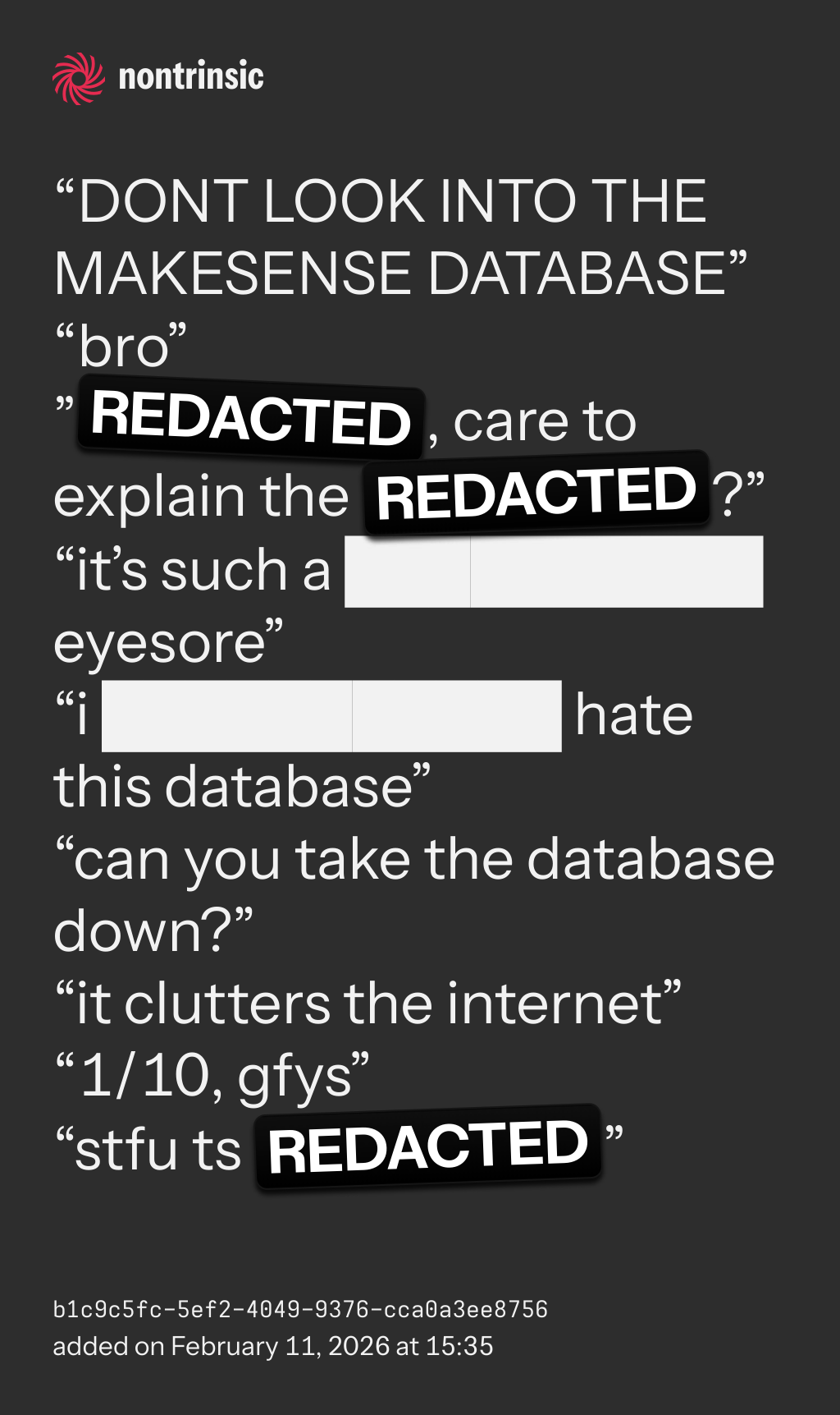 bagikan“DONT LOOK INTO THE MAKESENSE DATABASE”