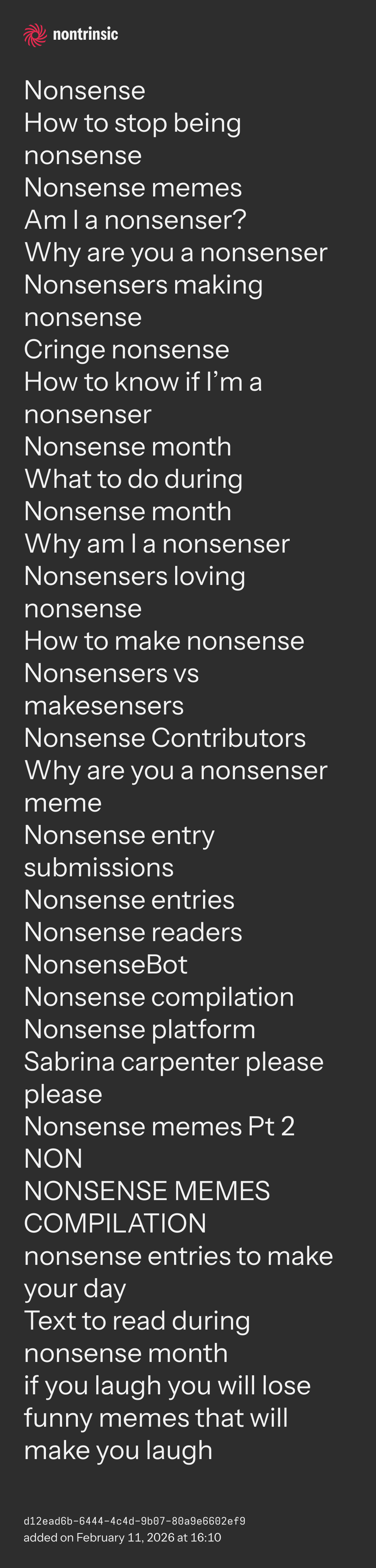 bagikanNonsense now in Nontrinsic!