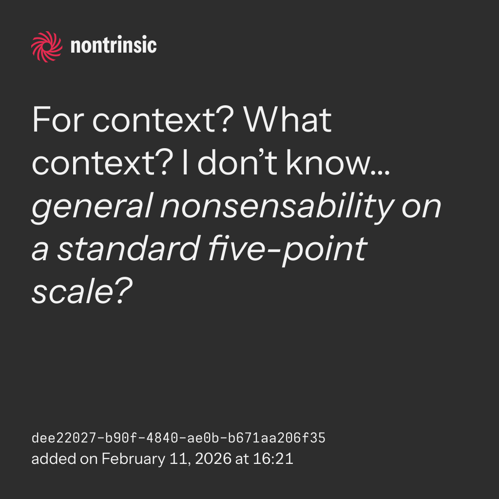 bagikanFor context? What context? I don’t know… general nonsensability on a standard five-point scale?