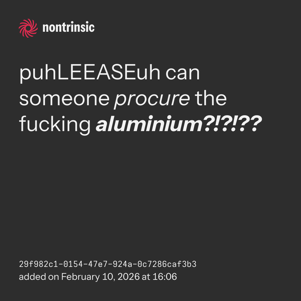 bagikanpuhLEEASEuh can someone procure the fucking aluminium?!?!??