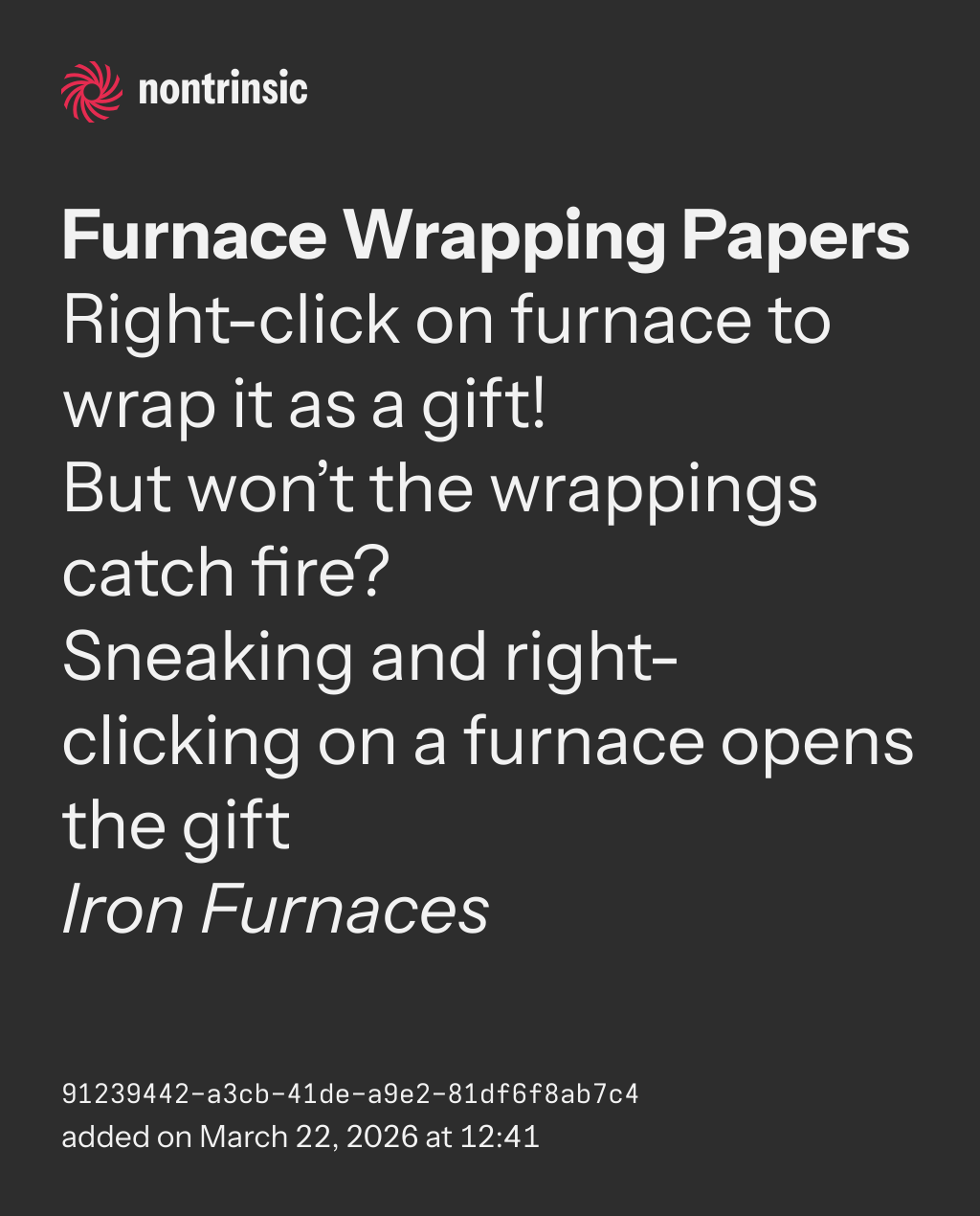 Right-click on furnace to wrap it as a gift!