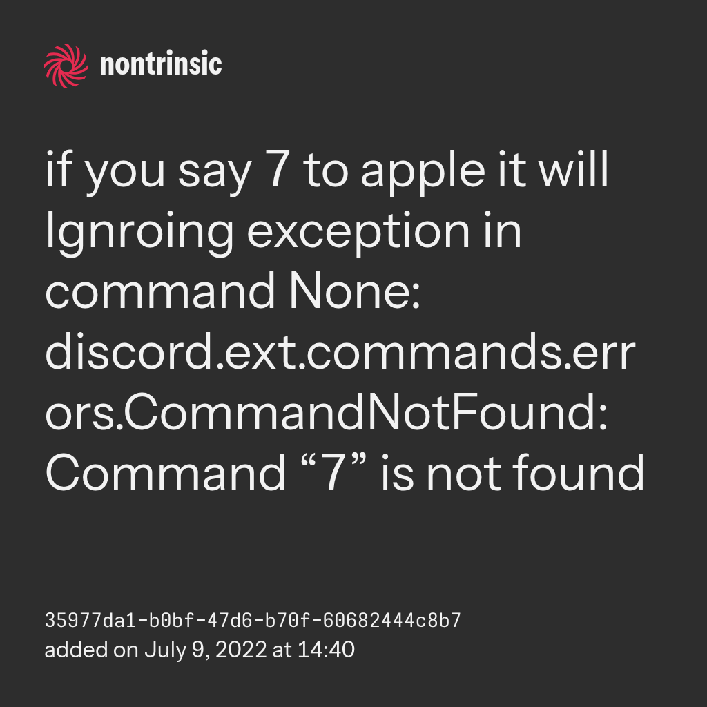discord.ext.commands.errors.CommandNotFound: Command “7” is not found