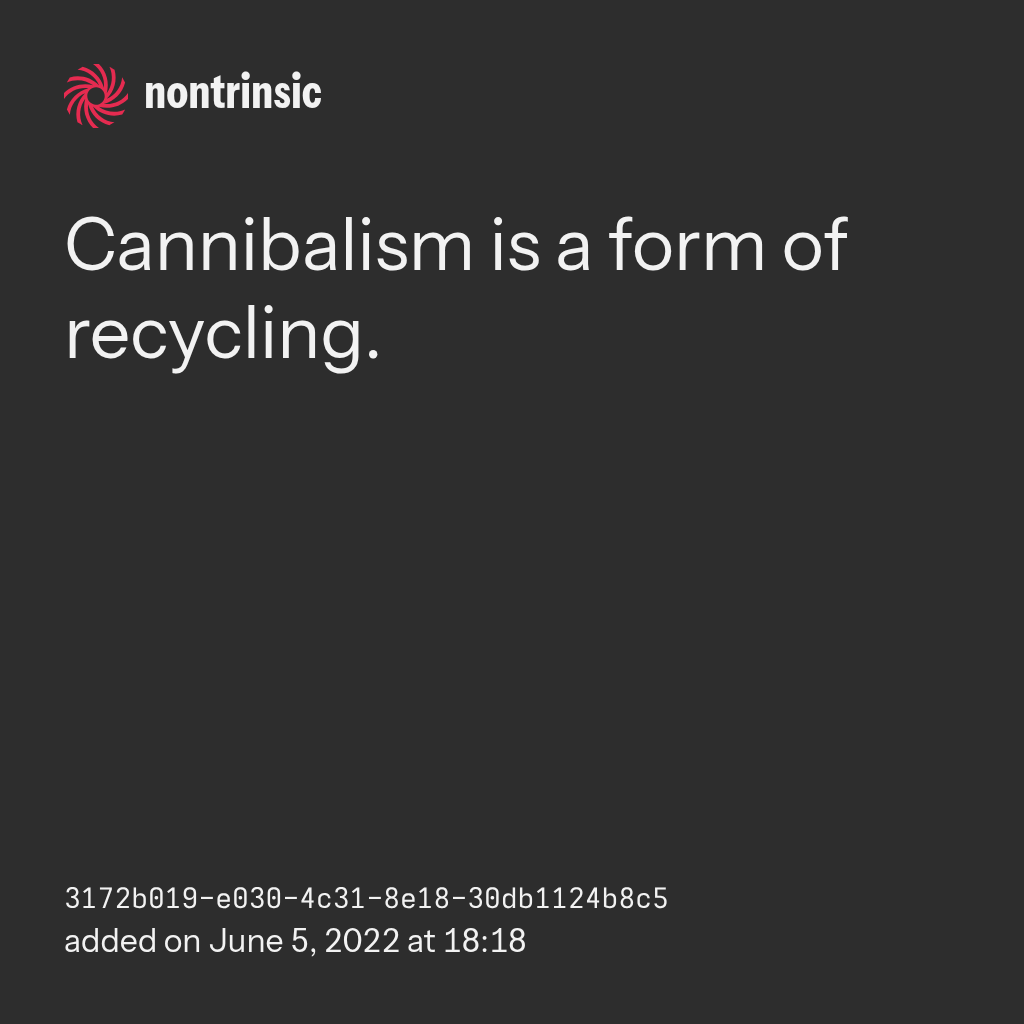 Cannibalism is a form of recycling.