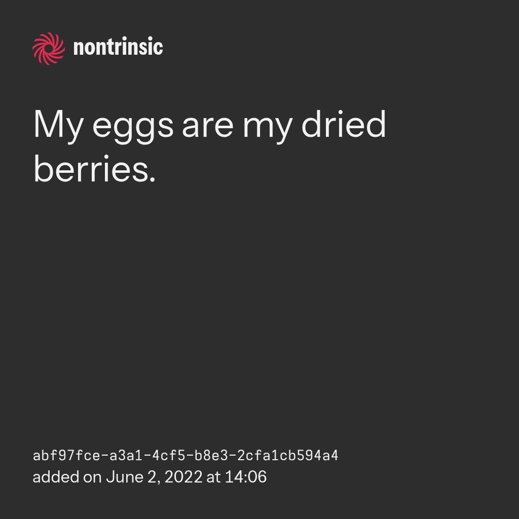 поделитьсяMy eggs are my dried berries.