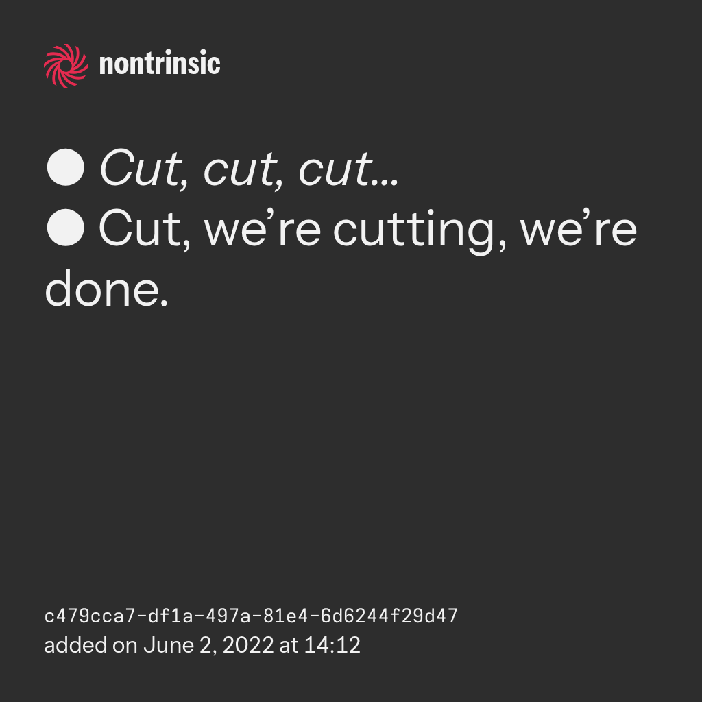 ● Cut, we’re cutting, we’re done.