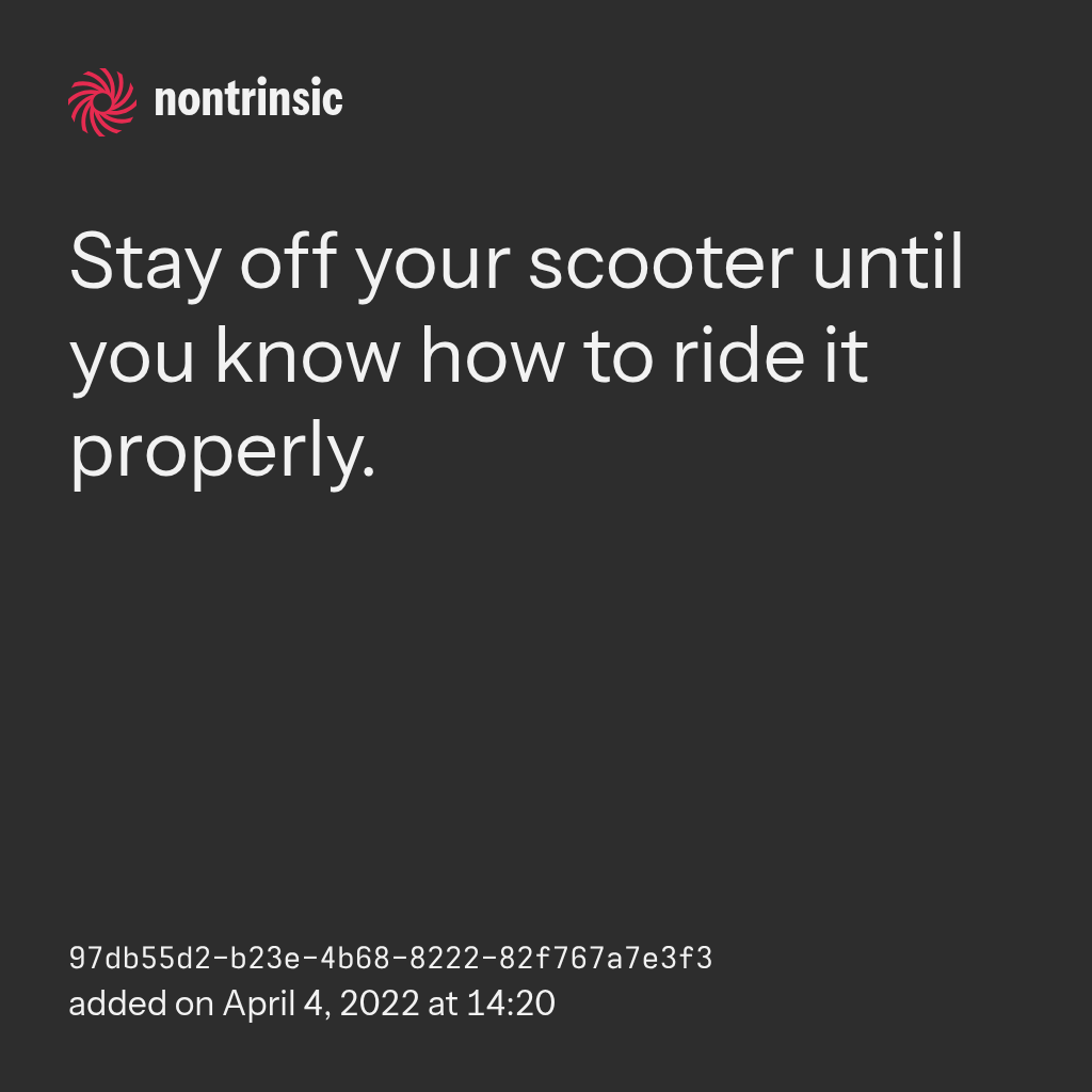 поделитьсяStay off your scooter until you know how to ride it properly.