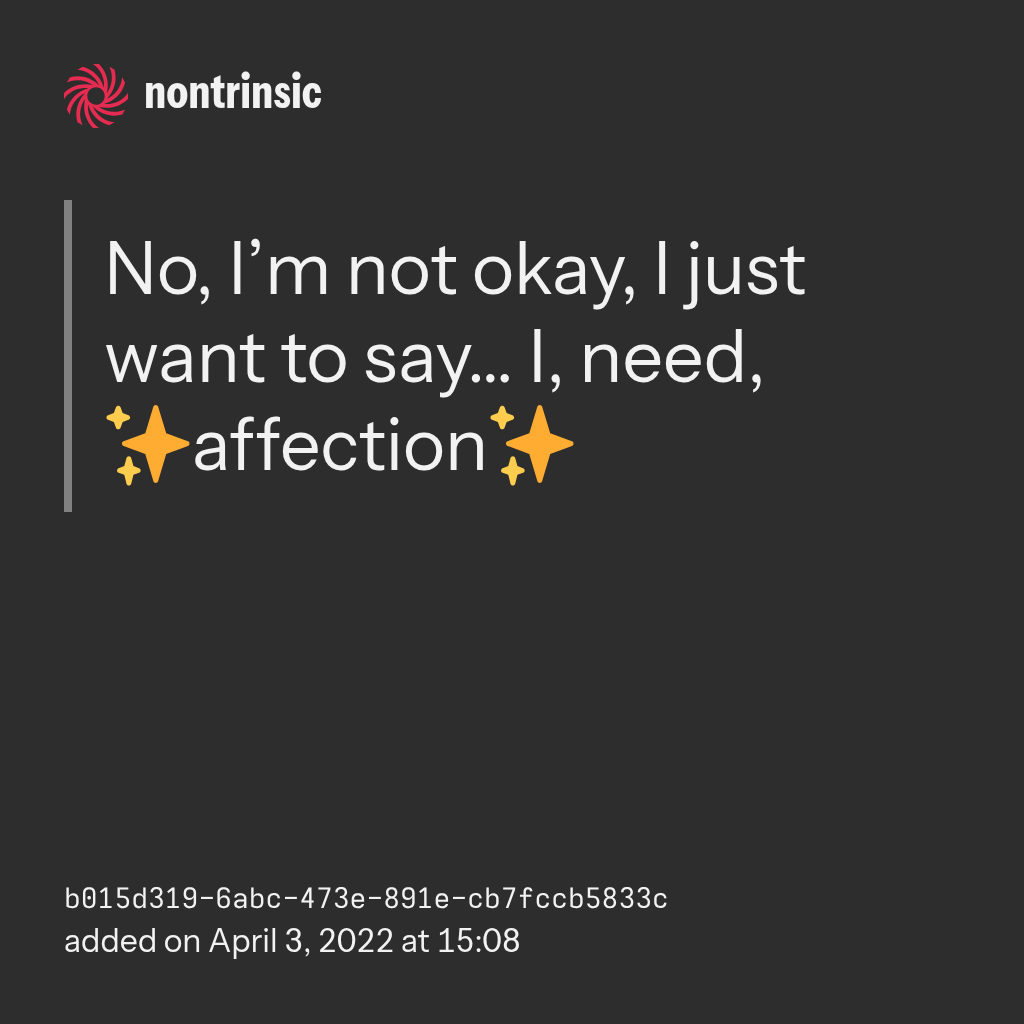поделитьсяNo, I’m not okay, I just want to say… I, need, ✨affection✨