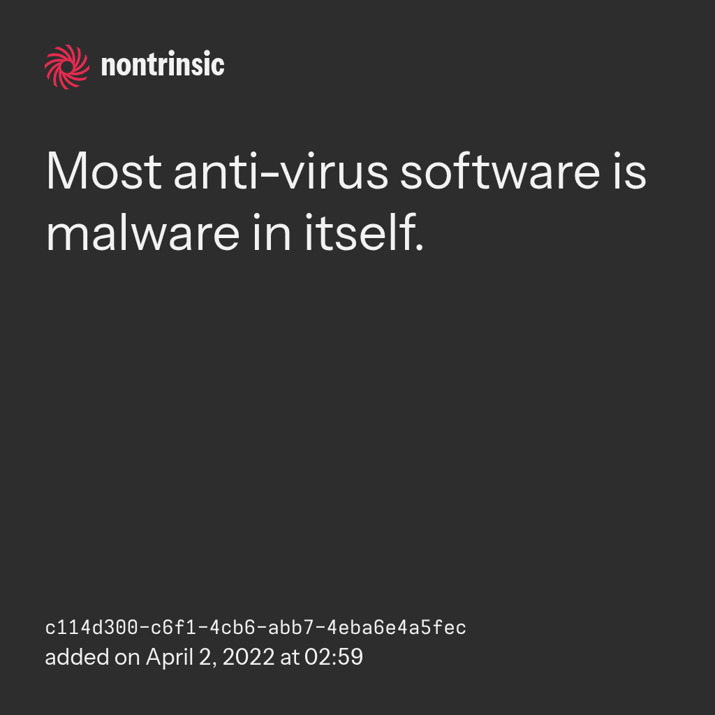 поделитьсяMost anti-virus software is malware in itself.