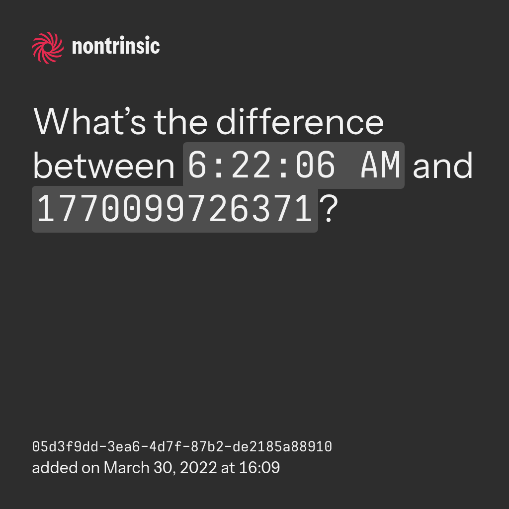 поделитьсяWhat’s the difference between 11:31:31 PM and 1770075091685?