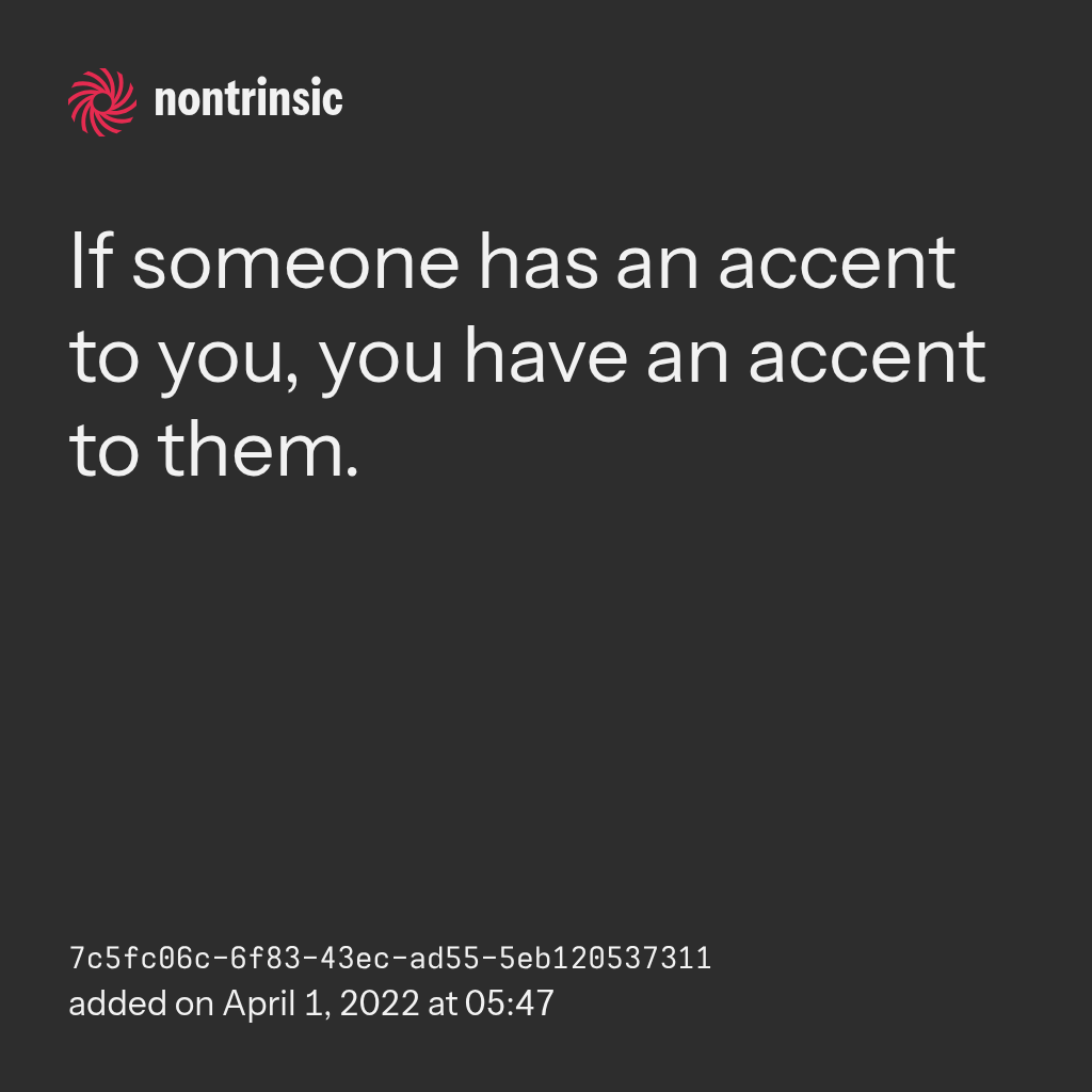 поделитьсяIf someone has an accent to you, you have an accent to them.