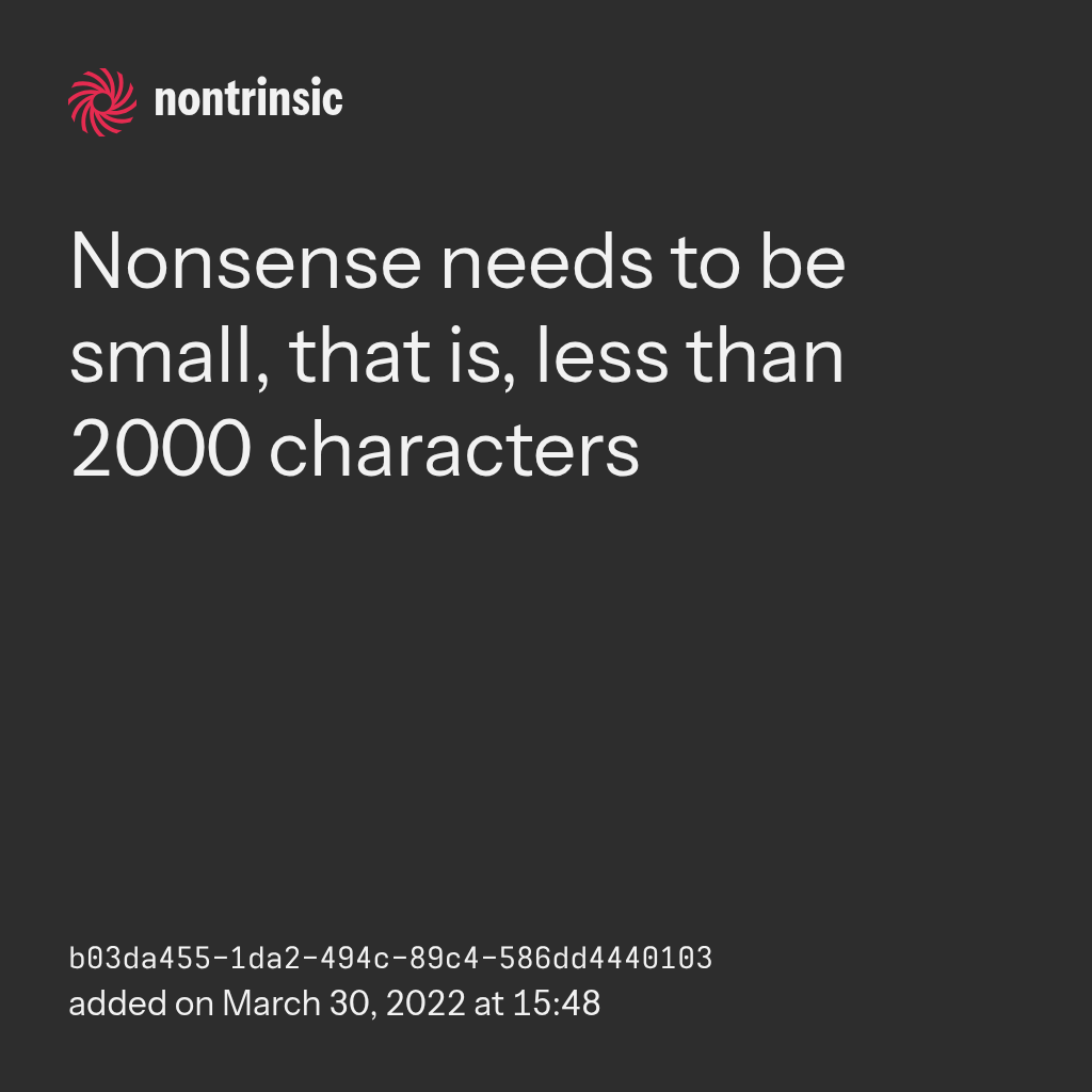 поделитьсяNonsense needs to be small, that is, less than 2000 characters