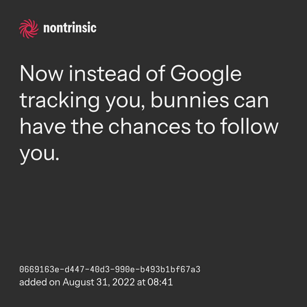 поделитьсяNow instead of Google tracking you, bunnies can have the chances to follow you.