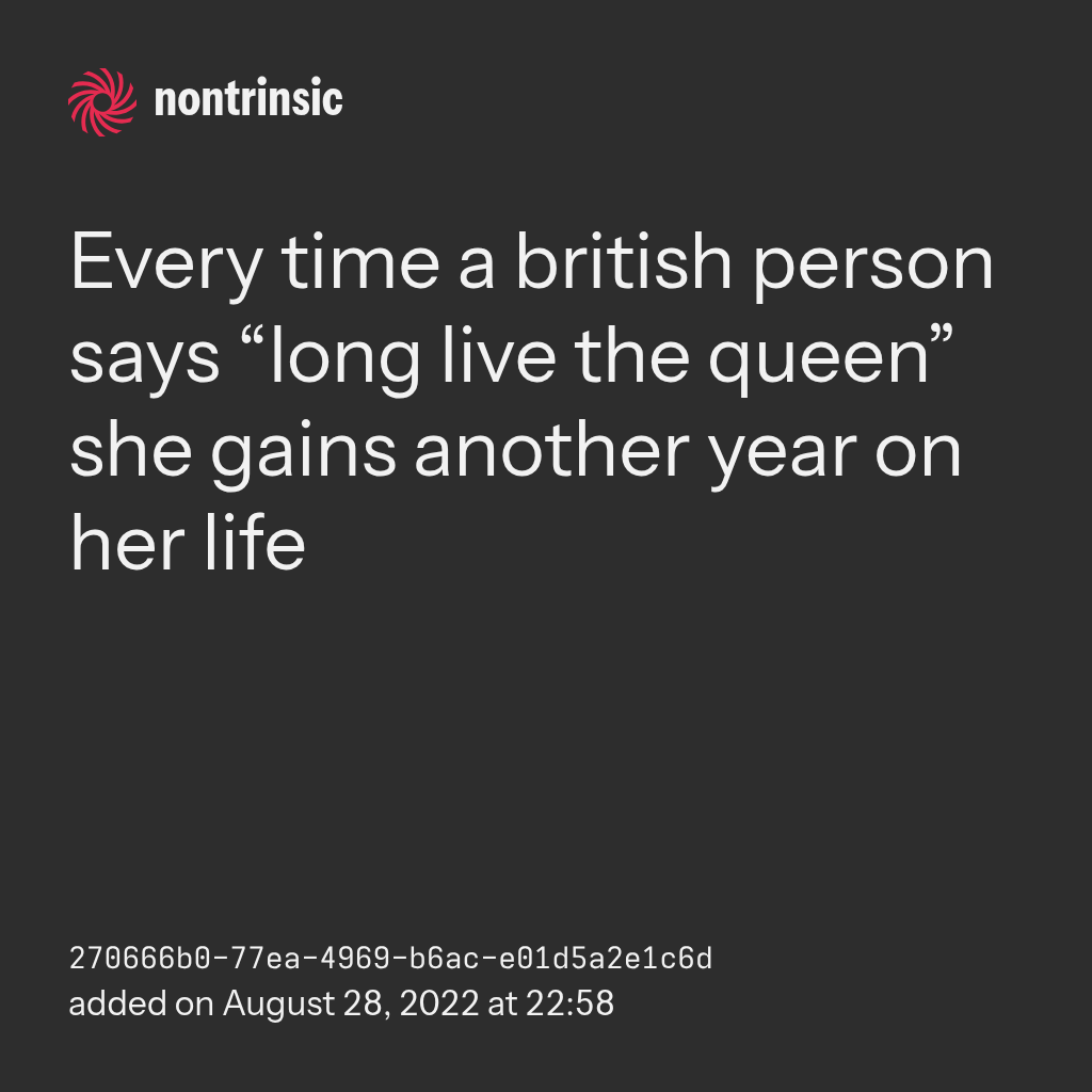 поделитьсяEvery time a british person says “long live the queen” she gains another year on her life