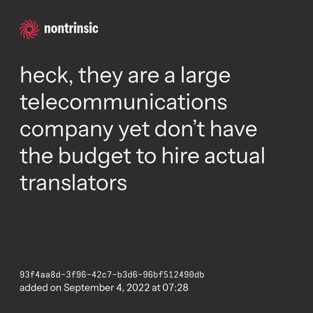 поделитьсяheck, they are a large telecommunications company yet don’t have the budget to hire actual translators