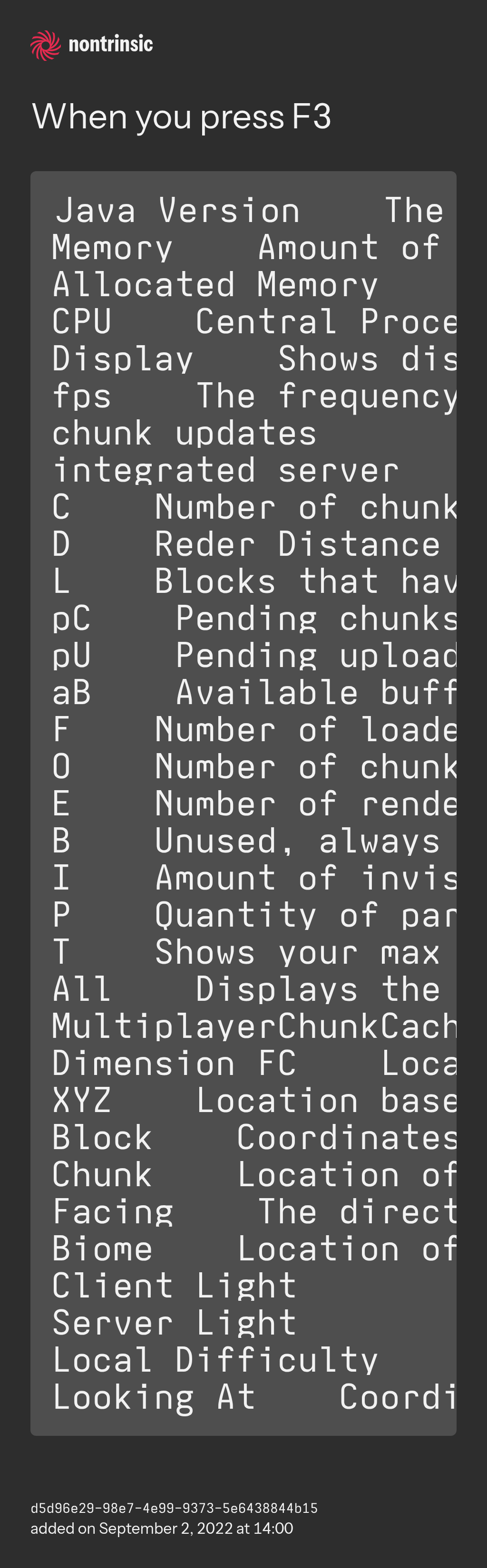 Looking At Coordinates for looking at a block or fluid in the form of XYZ. This is always rounded to a whole number.```