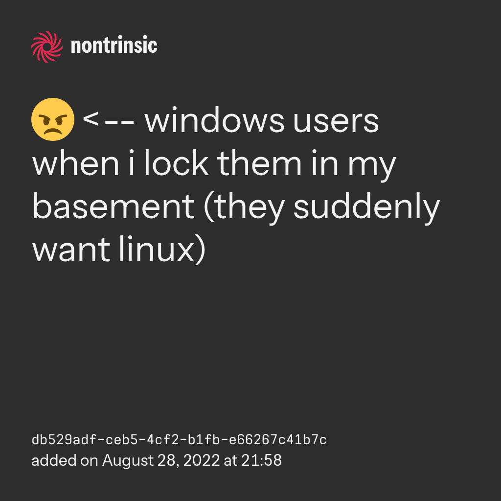 поделиться😠 <-- windows users when i lock them in my basement (they suddenly want linux)