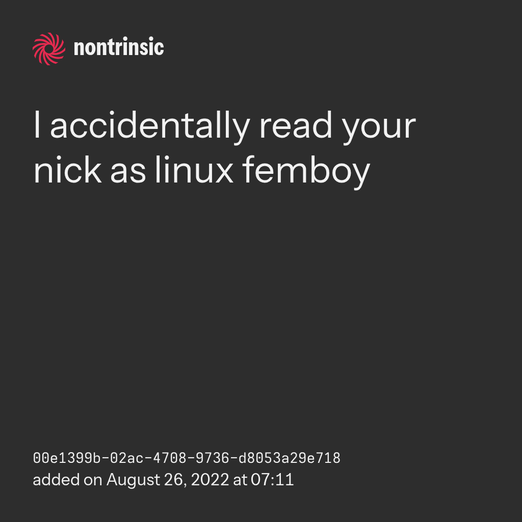поделитьсяI accidentally read your nick as linux femboy
