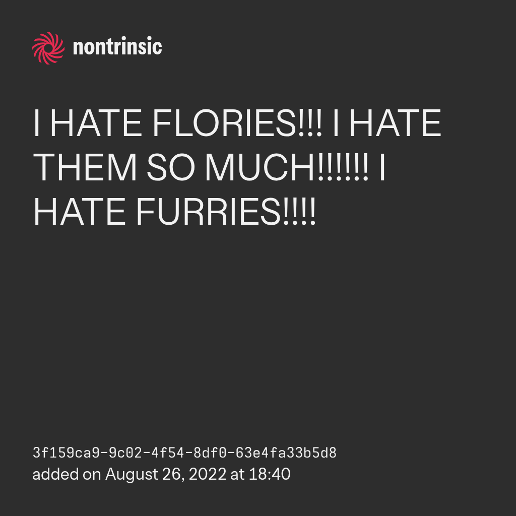 поделитьсяI HATE FLORIES!!! I HATE THEM SO MUCH!!!!!! I HATE FURRIES!!!!