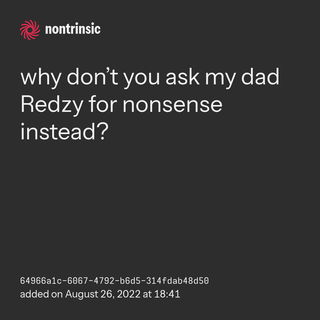 поделитьсяwhy don’t you ask my dad Redzy for nonsense instead?