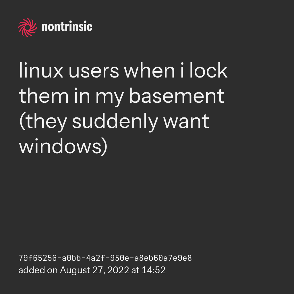 linux users when i lock them in my basement (they suddenly want windows)