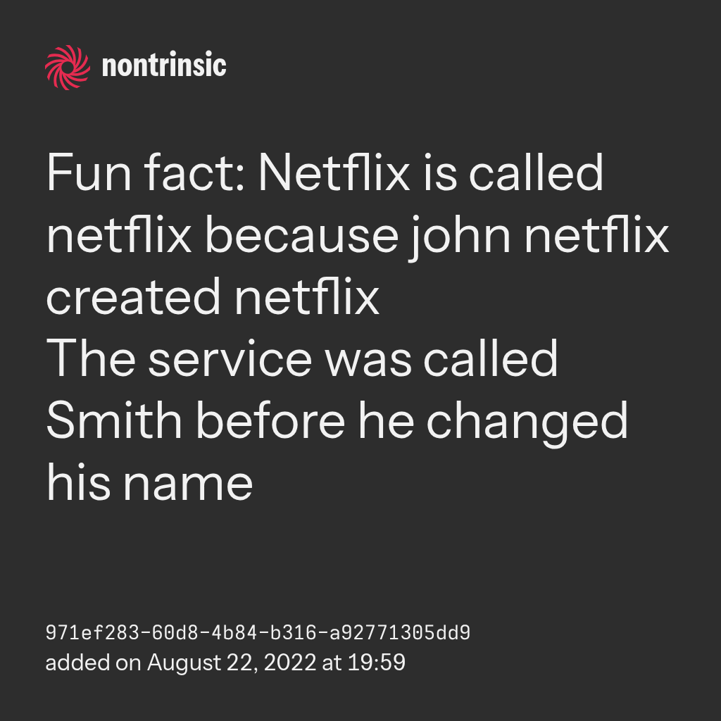 поделитьсяFun fact: Netflix is called netflix because john netflix created netflix