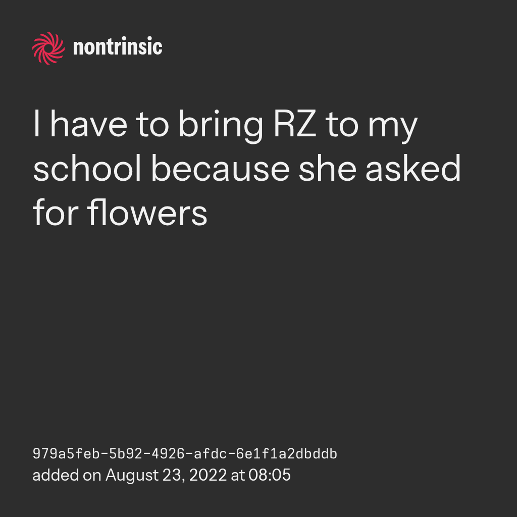 поделитьсяI have to bring RZ to my school because she asked for flowers