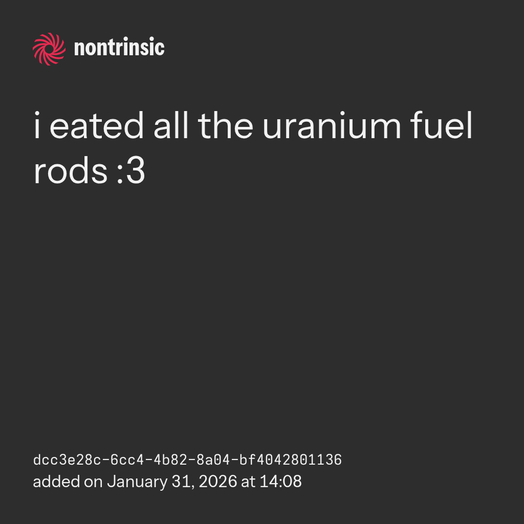 поделитьсяi eated all the uranium fuel rods :3
