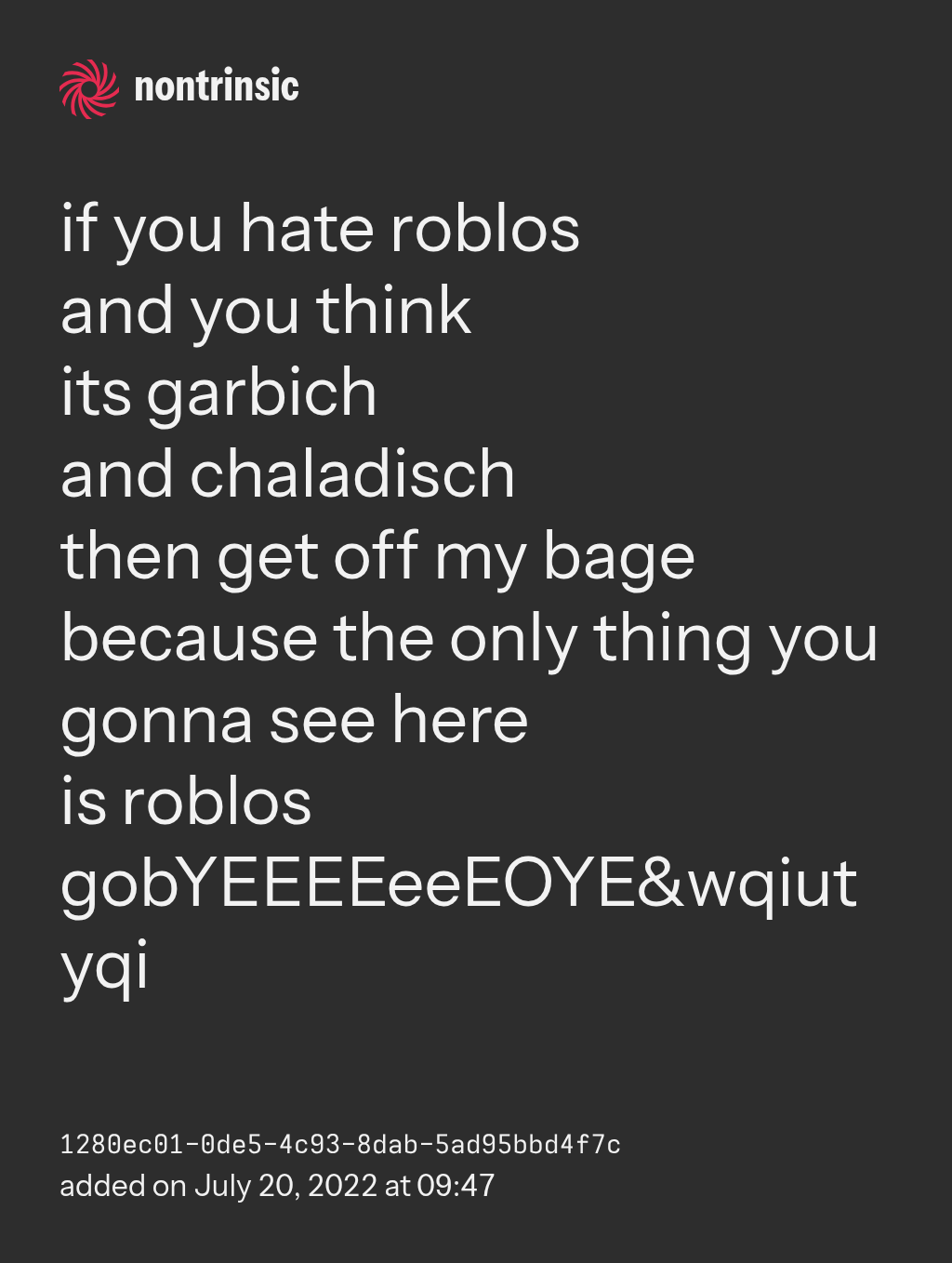 if you hate roblos and you think its garbich and chaladisch then get off my bage because the only thing you gonna see here is roblos gobYEEEEeeEOYE&wqiutyqi