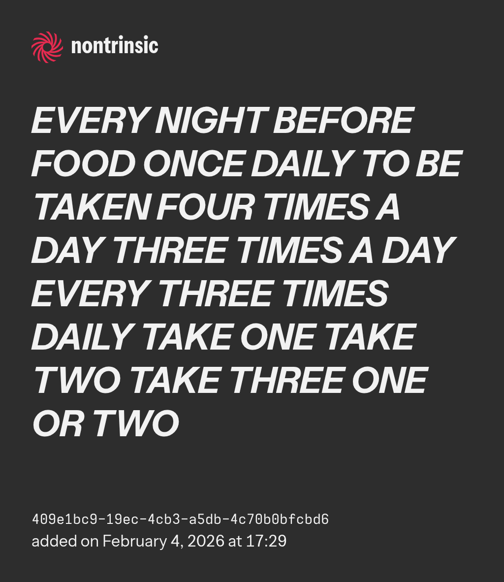 поделитьсяEVERY NIGHT BEFORE FOOD ONCE DAILY TO BE TAKEN FOUR TIMES A DAY THREE TIMES A DAY EVERY THREE TIMES DAILY TAKE ONE TAKE TWO TAKE THREE ONE OR TWO