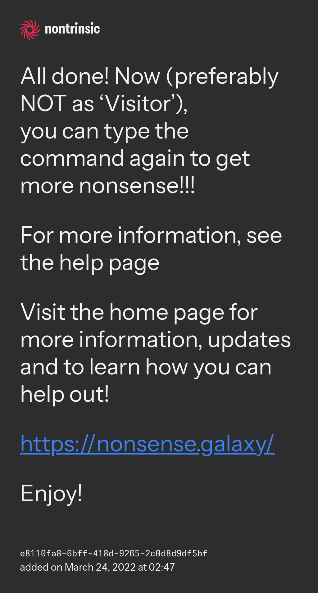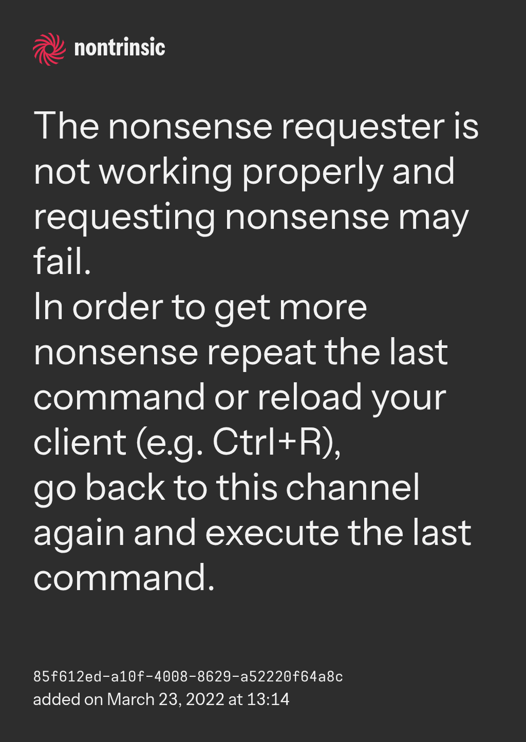 In order to get more nonsense repeat the last command or reload your client (e.g. Ctrl+R),