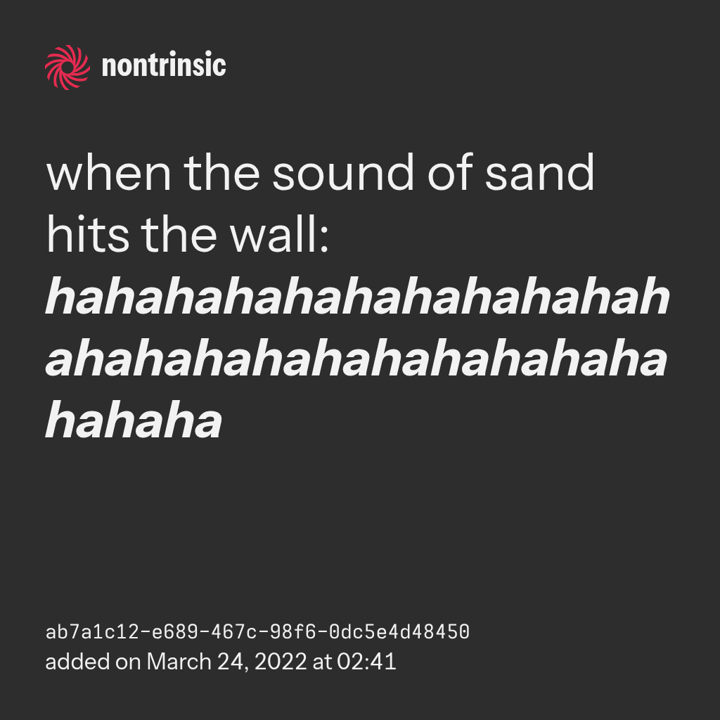 поделитьсяwhen the sound of sand hits the wall: hahahahahahahahahahahahahahahahahahahahahahahaha