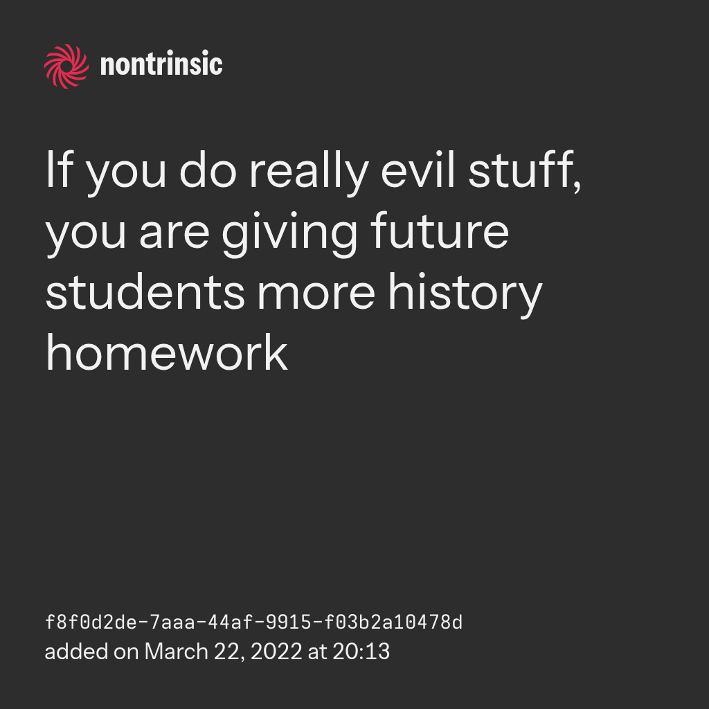 поделитьсяIf you do really evil stuff, you are giving future students more history homework